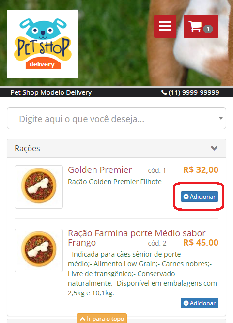 Localizado o produto/serviço o usuário irá clicar no botão adicionar.