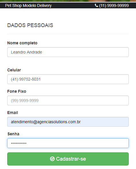 Observação: Note que ao realizar o cadastro, a opção BAIRROS só permitirá que o usuário selecione os bairros que a empresa cadastrou, ou seja, somente os que possuem rota de entrega.