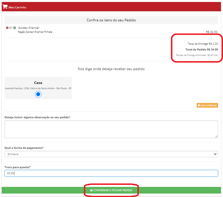 Estando tudo correto, clique no botão FECHAR PEDIDO.